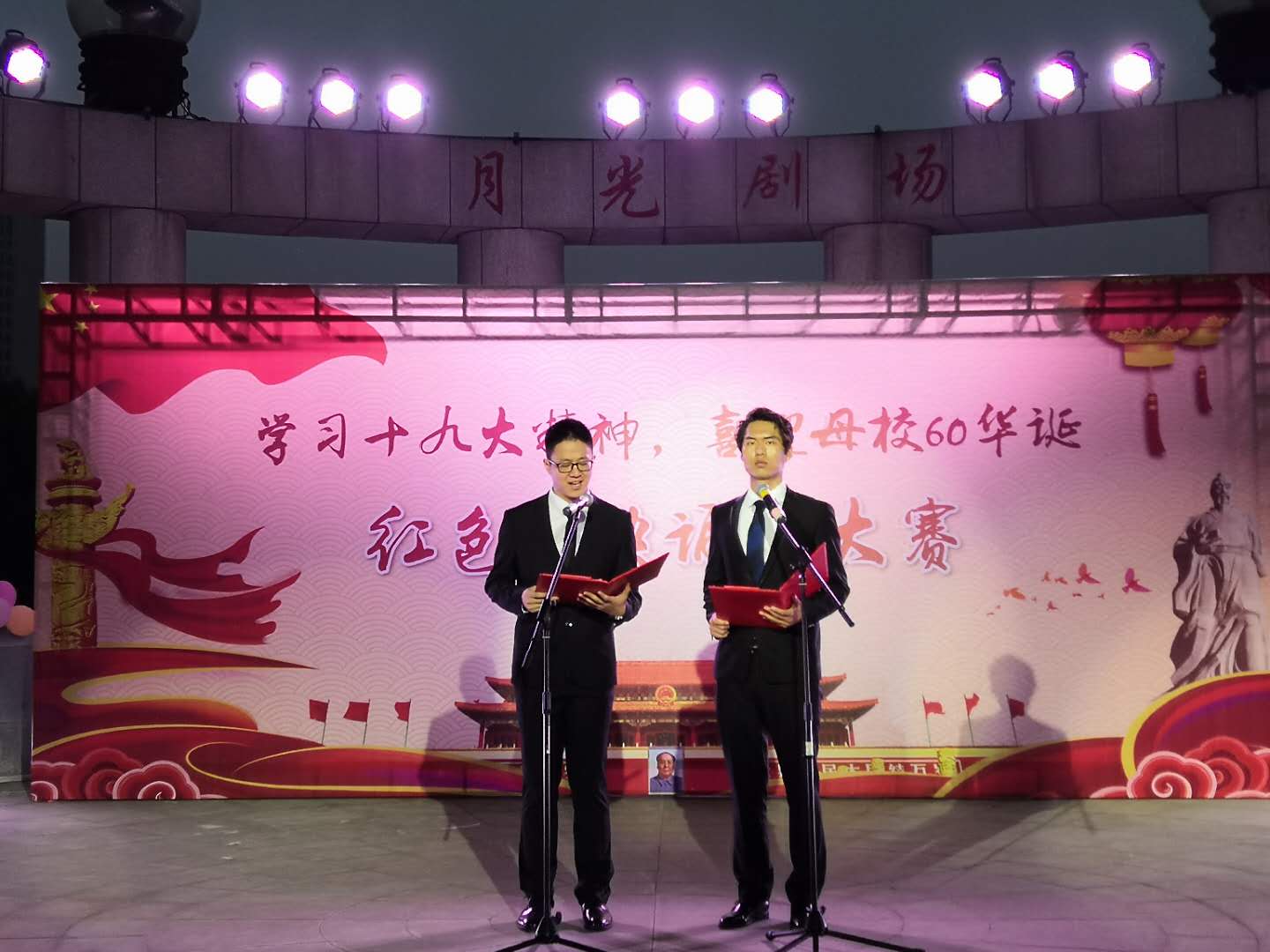 为深入学习贯彻党的十九大精神,进一步培育和践行社会主义核心价值观,教育广大青年继承优良革命传统,同时也为庆贺母校60周年华诞。2018年5月24日晚,河南中医药大学针灸推拿学院在月光剧场举办“学习十九大精神,喜迎母校60华诞——红色经典诵读大赛”,本次活动由关心下一代委员会、团委、工会、精神文明办联合举办。校关工委秘书长韩进武、针推学院党委副书记、关工委主任袁晓宇、工会主席郭书敏、精神文明办主任任聪颖、分团委书记葛昕老师担任评委,针推学院全体辅导员老师观看本次大赛。