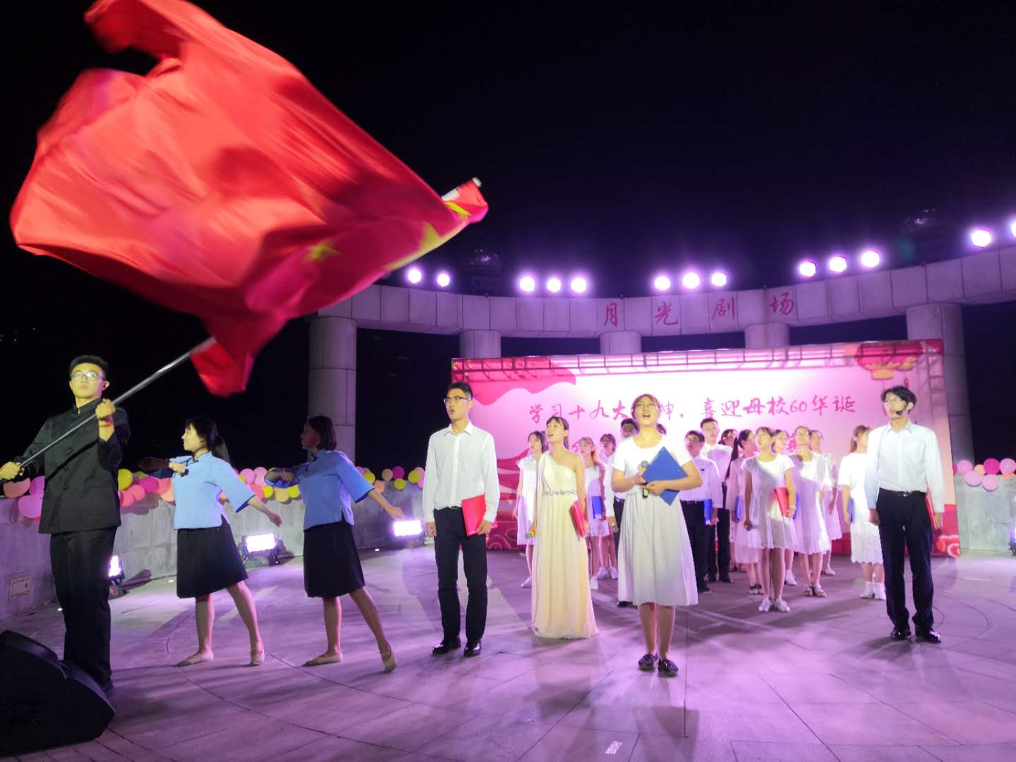 通过这次活动,不仅丰富了同学们的文化生活,展现了蓬勃向上的精神面貌,更主要的是通过这样的形式让广大青年大学生受到了一次深刻的爱国主义教育,表达了对党和国家的无比热爱之情,为母校60周年华诞献上了一份厚礼。