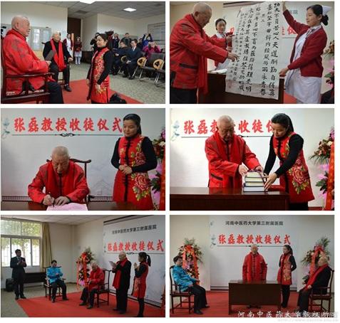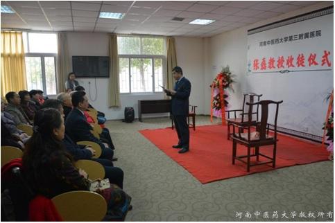 2017年1月24日,全国名老中医、国医大师候选人张磊教授收徒拜师仪式在三附院健康宣教中心隆重举行。三附院全体领导班子成员、河南商报主编助理范亚新、我校许敬生教授和三附院医政科人员、临床相关科室负责人、张磊教授弟子、媒体记者等近百人参加此次拜师仪式。三附院院长张大伟主持仪式。